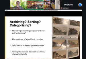 The discussion also examined the role of institutions in supporting and shaping these communities, noting that some archives and museums have begun to take active roles on social media. Additionally, we reflected on the differing temporalities and life-cycles of digital cultural heritage groups operating online.